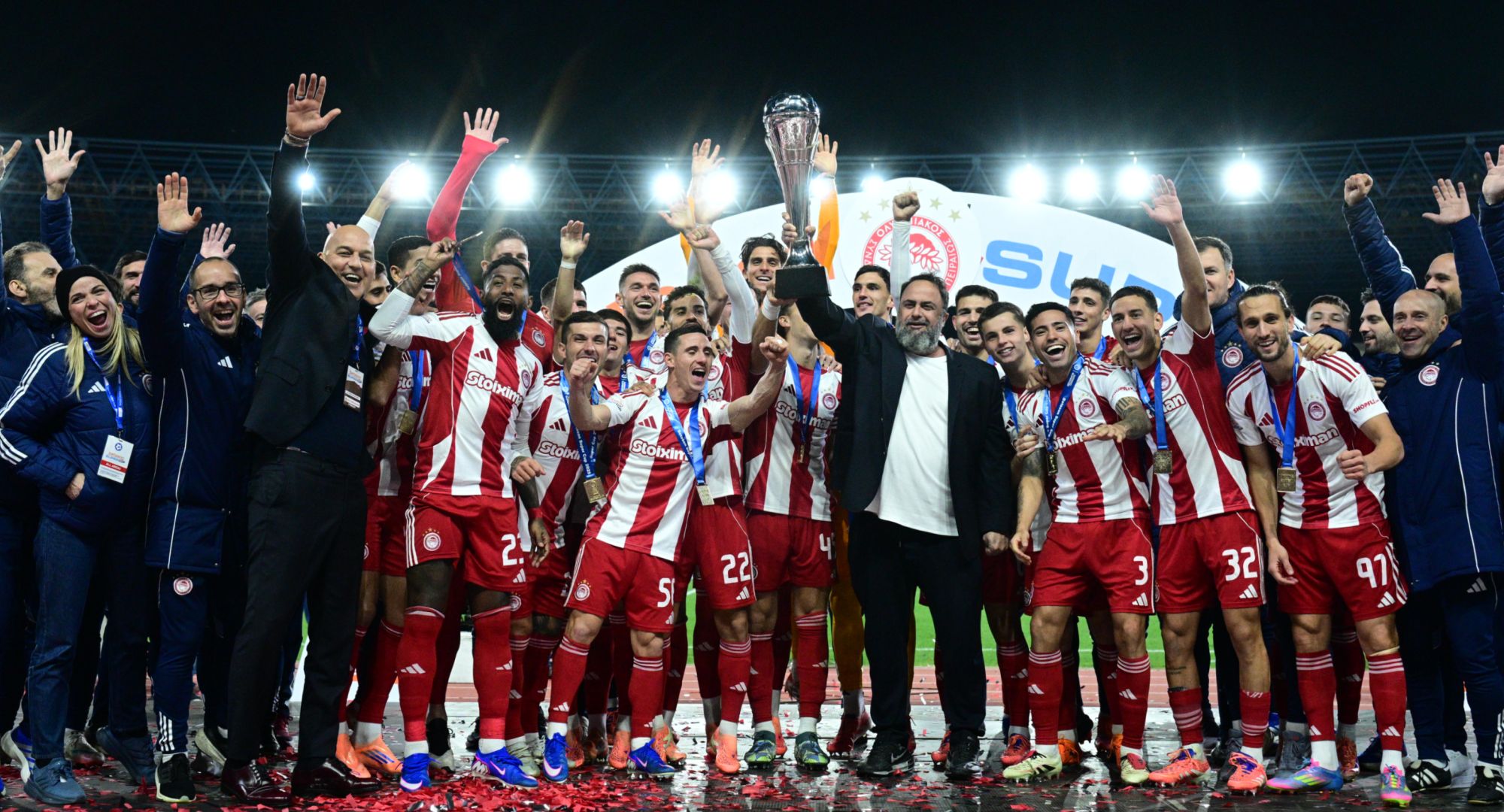 Θερμά συγχαρητήρια στην ομάδα ποδοσφαίρου του Ολυμπιακού μας για την κατάκτηση του Super Cup! Μια ακόμη μεγάλη επιτυχία για τον κορυφαίο πολυαθλητικό σύλλογο της Ευρώπης, που με 338 τίτλους, συνεχίζει να γράφει «χρυσές» σελίδες στην ιστορία του!