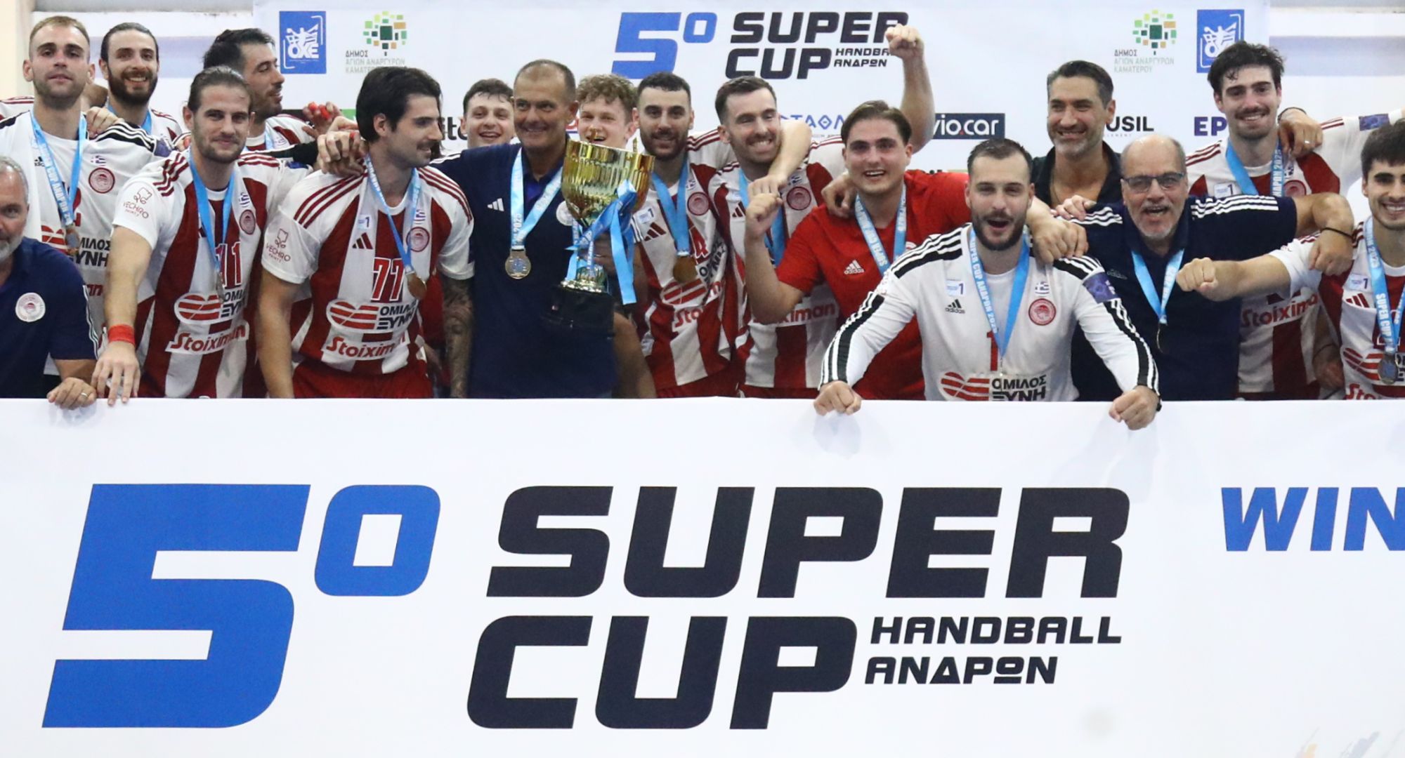 Τον πρώτο τίτλο της σεζόν 2025-26 κατέκτησε η ομάδα χάντμπολ του Ολυμπιακού/Ομίλου Ξυνή, η οποία νίκησε 24-23 την ΑΕΚ στο κλειστό γυμναστήριο του Καματερού, στον τελικό του Super Cup.