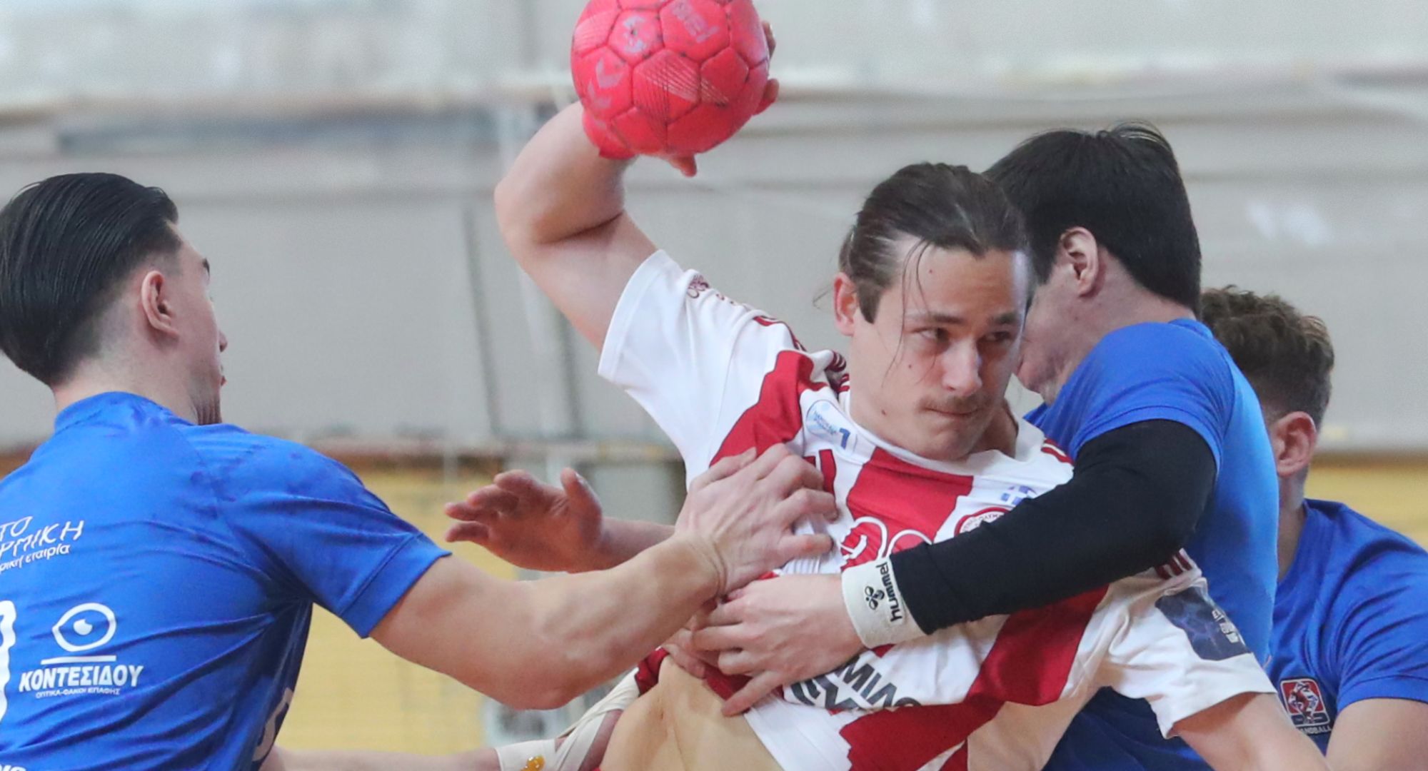 Πιο αναλυτικά, ο Ολυμπιακός «μπήκε» νωθρά στο ματς και βρέθηκε πίσω με 6-3, όμως ανέβασε «στροφές» και με τέρματα του Μιχαηλίδη, στο 8:30 και στο 9:19, ισοφάρισε σε 6-6 και 7-7. Με τη συμπλήρωση 12 λεπτών, ο διεθνής πίβοτ έδωσε προβάδισμα (9-8) στους «ερυθρόλευκους», οι οποίοι βελτίωσαν ακόμη περισσότερο την εικόνα τους και ξέφυγαν με 17-12, με γκολ του Εσκαλόνα στην κόντρα (20:35). Ο Θρύλος πάτησε «γκάζι» και ανέβασε τη διαφορά στο +8 (22-14), με ένα ακόμα τέρμα του Εσκαλόνα στην κόντρα (24:50), με τον Χιλιανό εξτρέμ να σκοράρει ξανά, στο 29ο λεπτό, διαμορφώνοντας το 23-16 του πρώτου ημιχρόνου.