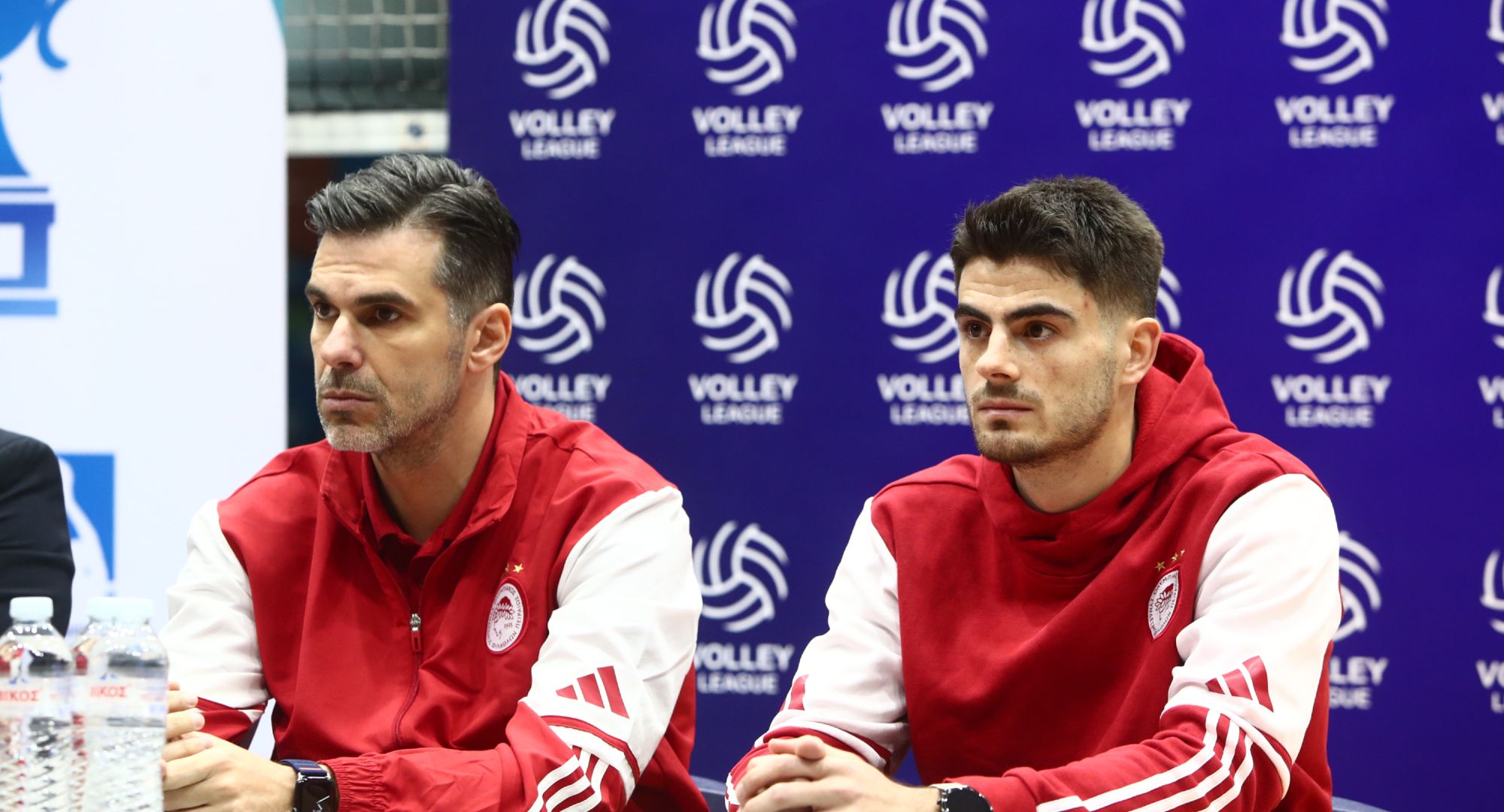 O προπονητής Αντώνης Βουρδέρης και ο Δημήτρης Τζιάβρας εκπροσώπησαν την ομάδα βόλεϊ Ανδρών του Ολυμπιακού ΟΝΕΧ στη συνέντευξη Τύπου του Super Cup, με αντίπαλο τον Παναθηναϊκό, στο Δημοτικό γυμναστήριο Μαρκοπούλου (13/1, 18:00).