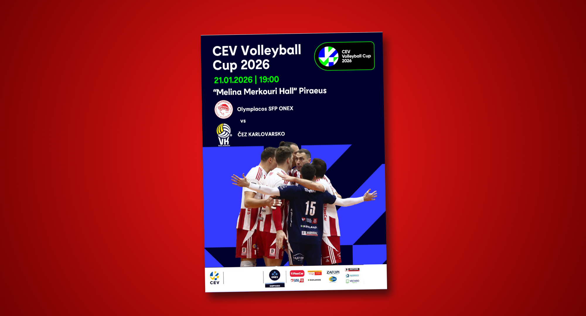 Διαβάστε παρακάτω, το Match Programme της αποψινής (21/1, 19:00) «μάχης» της ομάδας βόλεϊ Ανδρών του Ολυμπιακού ΟΝΕΧ με την Καρλοβάρσκο στο κλειστό του Ρέντη «Μ. Μερκούρη», για τη φάση των «16» του CEVCup.